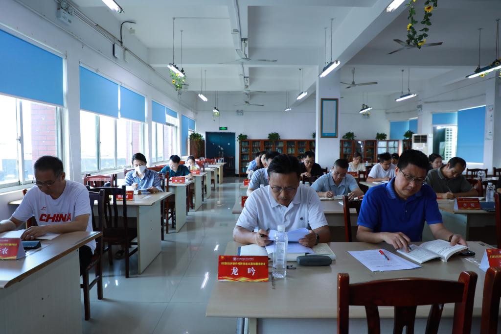 前两日,读书班在图书馆五楼阅览室进行集中学习,学员们在原有读书进度上,持续并深入学习党的二十大报告、党章、《习近平著作宣读》、《习近平新时代中国特色社会主义思想专题摘编》、《习近平总书记教育的重要论述讲义》、《习近平法治思想学习纲要》,以及从主题教育选读书目中选择内容精读,全体同志不顾酷暑,按位置就坐,边读书边思考、做笔记,严肃认真。