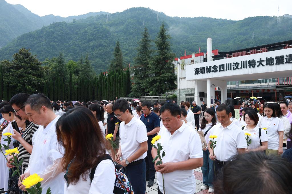 全体党员在汶川地震遗址漩口中学广场向已逝英烈、同胞默哀