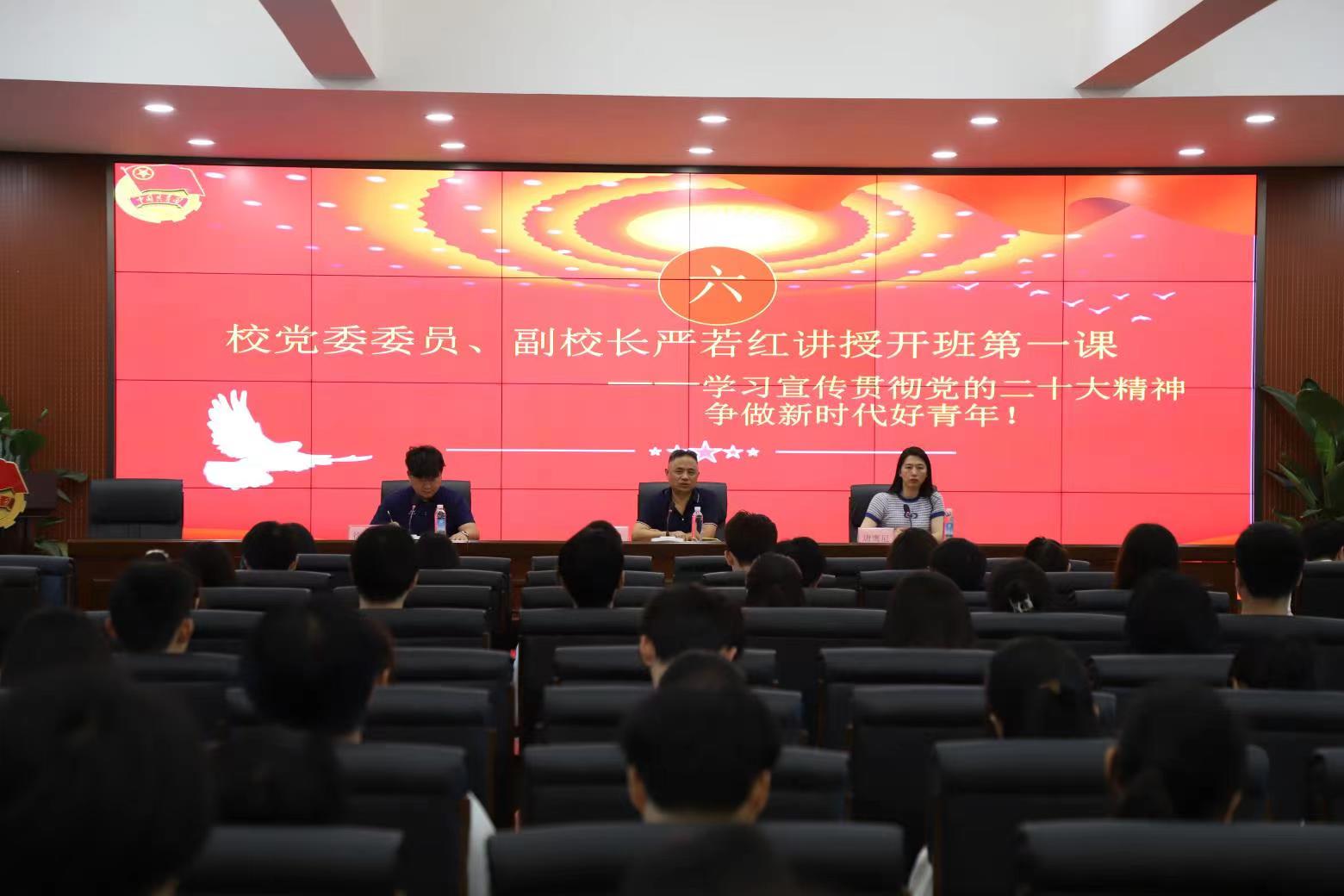 最后,校党委委员、副校长严若红以“学习宣传党的二十大精神,争做新时代时代好青年”为题讲授开班第一课。他在讲授中提出:“党的二十大报告中,习总书记对新青年提出了明确的要求,青年团员们一定要有理想、敢担当、能吃苦、肯奋斗。按照这四个标准规划成长之路,争做新时代好青年”。同时对全体入团积极分子提出殷切的期望:“作为青年大学生应具备思想道德礼仪方面的高素质,具备精湛专业的高技能和敢为人先的创新精神。在专业领域深耕创造,激发创新思维意识,顺应时代发展、树立远大理想”。