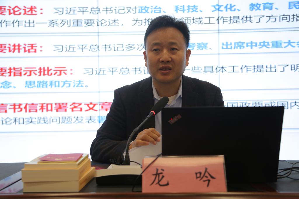 龙吟作了题为《学习贯彻习近平新时代中国特色社会主义思想,为建设教育强省和现代化新湖南贡献物院力量》的辅导报告(党课),龙吟从“怎样从理论框架体系上去理解把握习近平新时代中国特色社会主义思想”“怎样从时间空间维度上理解把握习近平新时代中国特色社会主义思想”“怎样结合高职学院的实际来学习贯彻习近平新时代中国特色社会主义思想”以及“如何务实推动9999js金沙老品牌主题教育开展”四个方面详细交流了自己的思考和体会,强调了要紧扣重点关键抓实主题教育、要坚持“三个结合”抓实主题教育、要强化过硬作风抓实主题教育,要牢牢把握“学思想、强党性、重实践、建新功”的总要求,全面落实理论学习、调查研究、推动发展、检视整改、建章立制等方面的重点措施,推动主题教育各项任务落实到位,加强学校内涵建设,打造楚怡“双高校”,为建设教育强省和现代化新湖南贡献物院力量。
